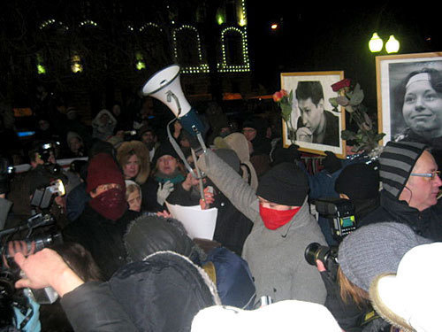 Акция памяти адвоката Станислава Маркелова и журналистки Анастасии Бабуровой проходит в эти минуты в Москве. Шествие прошло по Петровскому бульвару. Около 21 мск участники прорвали милицейское оцепление, несколько десятков из них задержаны.