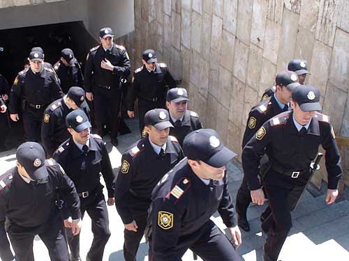 Полицейские наряды сегодня сосредоточены и на прилегающих к АГНА улицах и площадях и перед станциями метро «28 мая» и «Сахил». Полиция и лица в штатском останавливают всех «подозрительных» и оттесняют их в противоположную сторону от второго корпуса АГНА, передает корреспондент "Кавказского узла".