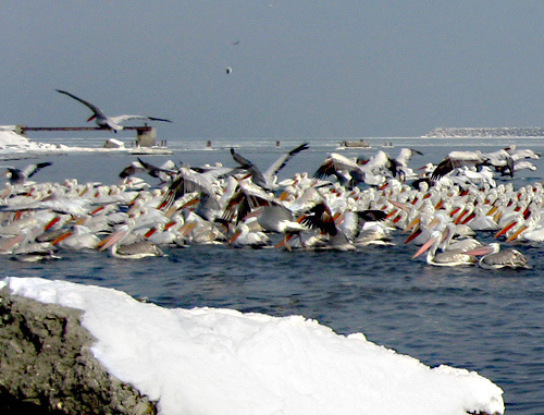В дагестанской акватории Каспийского моря под угрозой гибели из-за аномальных морозов оказались сотни птиц, в том числе занесенные в Красную книгу России пеликаны.