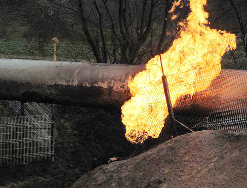 Перед тем, как над трубой взметнулся огненный факел, был слышен сильный хлопок. В МВД республики не исключили вероятность взрыва, передает "Первый канал".