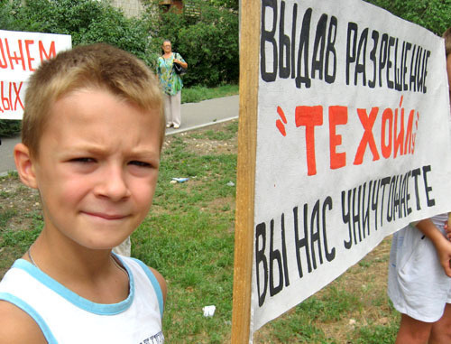 Пикет прошел с 10.00 до 12.00 и был организован жителями поселка и информационным центром (ИЦ) "Волгоград-Экопресс". 17 активистов держали в руках плакаты: "Техойл, не трави людей", "Выдав разрешение "Техойлу", вы нас уничтожаете", "Мы не можем больше задыхаться", "Росприроднадзор, отзовите разрешение на работу "Техойла".