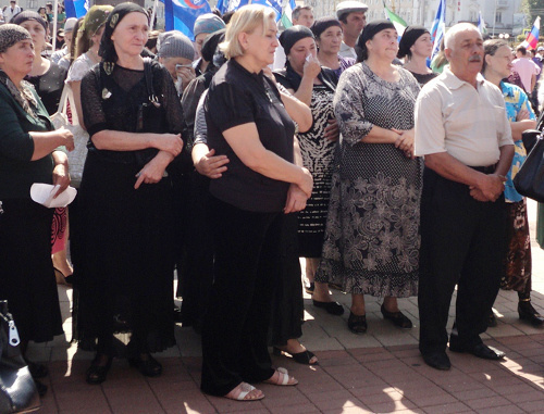 Сегодня в Нальчике на площади Марии прошел митинг общественности республики, в котором приняло участие более 500 человек. Участники антитеррористического митинга призвали к борьбе с пособничеством боевикам, возрождению родовых связей, а также большему взаимодействию с молодежью Кабардино-Балкарии.