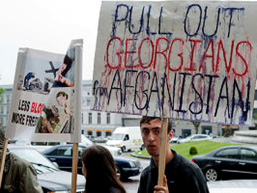 Акция с требованием вывести грузинские войска из Афганистана, где 6 июня погибли семь солдат из Грузии, прошла сегодня в Тбилиси. По мнению участников акции, Грузия направила войска в Афганистан ради вступления в НАТО, однако пока что не получает должной ответной поддержки, сообщил представитель НПО "Клуб молодых политологов" Георгий Мдивани.