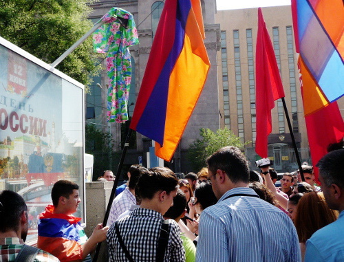 В протестном мероприятии приняли участие несколько десятков человек, акция была организована партией ''Айазн'', сообщает корреспондент "Кавказского узла".