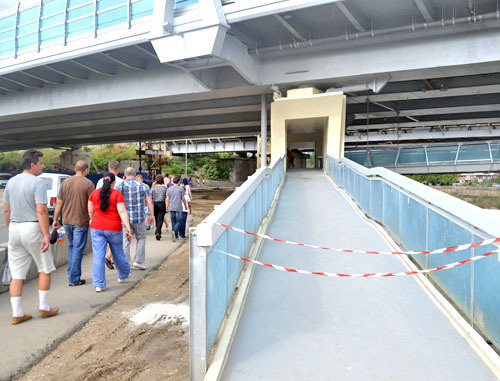 Пешеходный мост через реку Сочи открыт с опозданием на пять месяцев. Фоторепортаж корреспондента "Кавказского узла" Светланы Кравченко