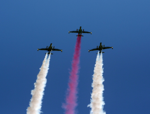 По информации Министерства обороны Грузии, разные маневры в ходе авиашоу осуществили самолеты L-39 и Су-25.