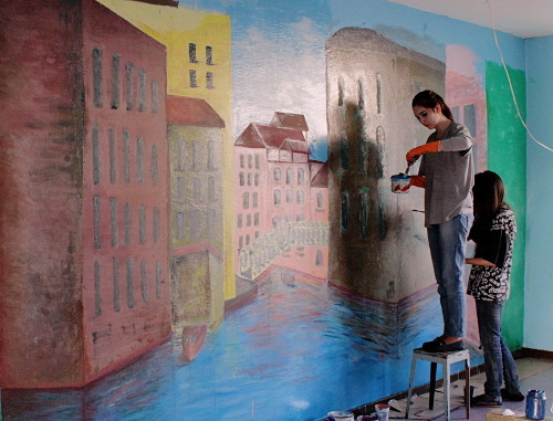 «Цвет стен после ремонта был ужасный. Наша группа занималась столовой, мы решили нарисовать здесь Венецию. В зоне отдыха – закат над морем. В палатах рисовали природу - цветы, поля. Конечно, учитывали и пожелания. Кто-то попросил изобразить в палате волков, кто-то розы. Нам очень понравилось, хотя и пришлось много дышать краской. Люди там нереально классные, все понимающие. Это неделя многое значила для нас», - рассказала корреспонденту «Кавказского узла» студентка 4 курса специальности «дизайн интерьера» Елена Хагурова.