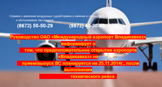 Открытие аэропорта "Владикавказ" перенесено на конец 2014 года
