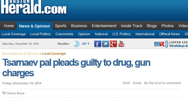 Знакомый Джохара Царнаева, обвиняемого в организации теракта на Бостонском марафоне, Стивен Силва признал вину в распространении героина и незаконном хранении оружия. По версии обвинения, из пистолета, хранившегося у Силвы, братья Царнаевы застрелили полицейского.