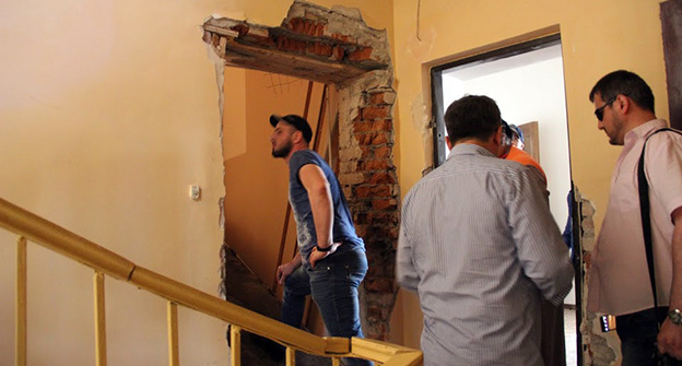 "Толпа начала собираться внизу под окнами офиса, начали выкрикивать что-то про Джамбулата Дадаева, хотя его родственники никогда к нам не обращались. Наш сотрудник хотел уже выйти и рассказать этим людям, что мы не занимаемся этим делом. Потянулся к замку, но услышал удар кувалдой в дверь. Посмотрел в камеру, увидел там людей в масках, они поспешили ретироваться через окно", - цитирует Дмитрия Утукина радиостанция "Говорит Москва".