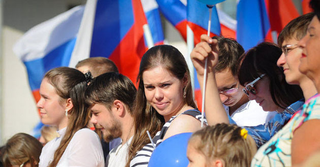 В рамках акции "Российский триколор" колонна из представителей казачества и молодежи прошла за 45-метровым российским флагом. Также городская молодежь провела флешмоб "Под флагом России" - порядка 300 человек выстроились в живой российский триколор, затем в большое бьющееся сердце и подняли вверх таблички с фразой "Я люблю Россию".