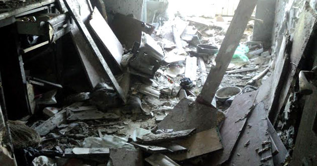 Квартира на шестом этаже, где находились предполагаемые боевики, разрушена полностью, в ней есть следы возгорания. В разрушенном состоянии оказалась и квартира на пятом этаже.