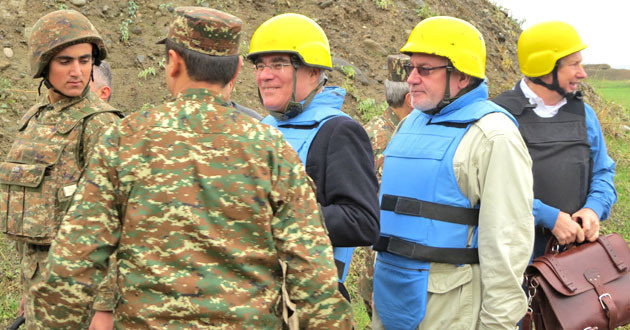 В ходе миссии сопредседатели Минской группы ОБСЕ Игорь Попов (Россия), Пьер Андриё (Франция), Джеймс Уорлик (США) и посол Анджей Каспшик пересекли линию соприкосновения, перейдя со стороны Нагорного Карабаха в Азербайджан для продолжения регионального визита.