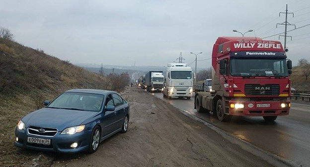 На месте акции дальнобойщиков Волгограда образовалась пробка