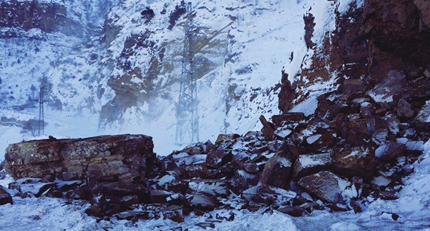 После обвала в горах ограничено движение по автодороге в Дагестане
