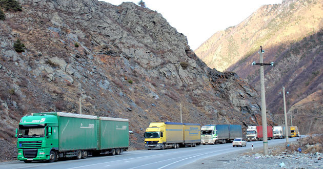 Более 100 грузовиков скопились на КПП "Верхний Ларс"
