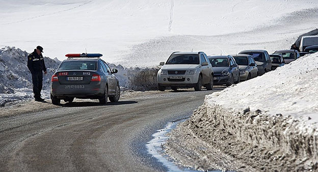 Движение запрещено по причине ухудшения погодных условий и угрозы схода лавин в соответствии с рекомендацией пограничной полиции Грузии, сообщается 18 февраля на сайте Северо-Кавказского регионального центра МЧС.