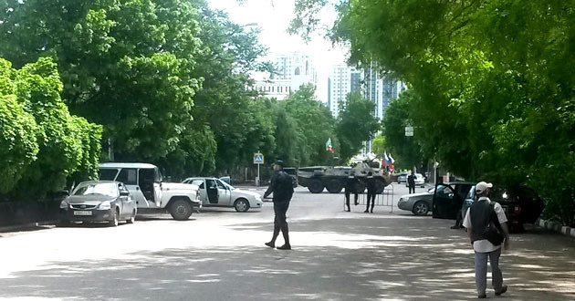 В Грозном после произошедшего сегодня утром теракта на одном из КПП полиции, значительно усилены меры безопасности. В отличие от прошлых лет силовики полностью перекрыли все выходы на проспекты Путина и Кадырова, по которым обычно проходят участвующие в параде пешие расчеты и военная техника.