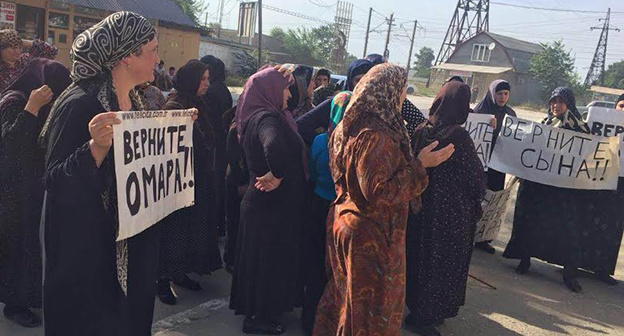 Женщины митинговали с плакатами «Верните сына!», «Верните брата!», «Сегодня мы, завтра вы!», «Верните Омара!».