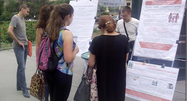 "Прохожие говорили, что они в курсе закона, читали о нем в интернете и возмущены. Видно, что закон получил широкую огласку. Те, кто в курсе закона, выступают против него", - утверждает активист.