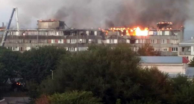 Как писал "Кавказский узел", дом по улице Энгельса загорелся сегодня утром. Пожар охватил более 1000 квадратных метров, спасатели эвакуировали 80 человек. При ликвидации возгорания в одной из квартир были обнаружены тела двух погибших.