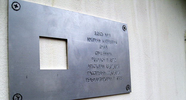 Табличка установлена на доме, где проживал репрессированный священник. Всего на церемонии открытия присутствовали 25 человек, включая немногочисленную прессу, передает корреспондент «Кавказского узла», присутствовавший на мероприятии.