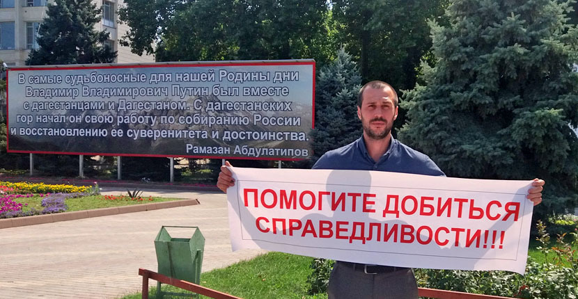 Житель Дагестана Керим Фартахов в ходе одиночного пикета в Махачкале потребовал объективно рассмотреть его дело в суде.