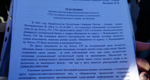 Жильцы общежития объявлены постояльцами гостиницы "Коммунальник", и администрация гостиницы обратилась в суд с требованием взыскать с них долги за гостиничные услуги и выселить без предоставления другого жилья, пожаловались 23 января участники митинга во Владикавказе.