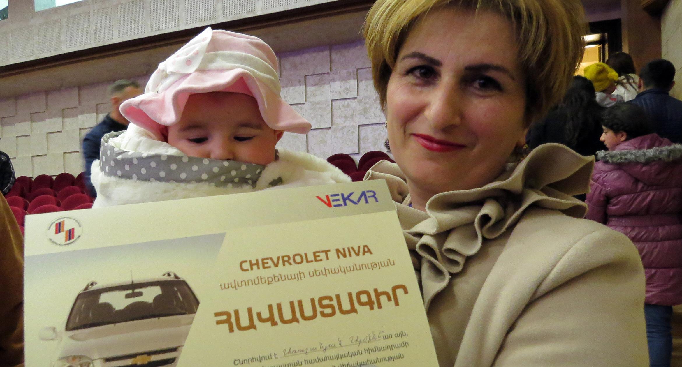 Нарине Арушанян из Степанакерта рассказала корреспонденту Кавказского узла, что 4 тысячи долларов и выигранный автомобиль - большая поддержка для ее многодетной семьи.