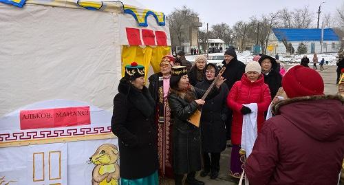 По периметру площади были установлены юрты, где можно было попробовать традиционные в этот день угощения: калмыцкий чай, борцоки (пышки из сдобного теста), а также масленичные блины.