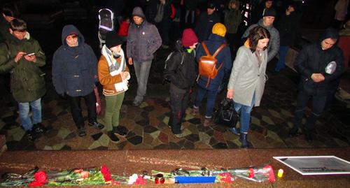 "Я не организатор этого мероприятия. В чатах с друзьями решили собраться в этом месте в этот час, чтобы выразить нашу скорбь по поводу погибших в торговом центре "Зимняя вишня". Требования к властям не выдвигаем, потому что это не политическая акция. Хочется, чтобы было проведено справедливое расследование и все виновные понесли ответственность. Главная причина трагедии – коррупция в нашей стране", - сказал корреспонденту "Кавказского узла" Алексей Волков.