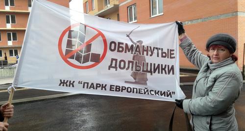 Дольщица ЖК «Парк Европейский» Светлана Гарбузова, пришедшая на встречу с плакатом «1294 семьи – ЖК «Парк Европейский», сообщила корреспонденту, что ждет своей квартиры с 2014 года. Сейчас она живет в общежитии.