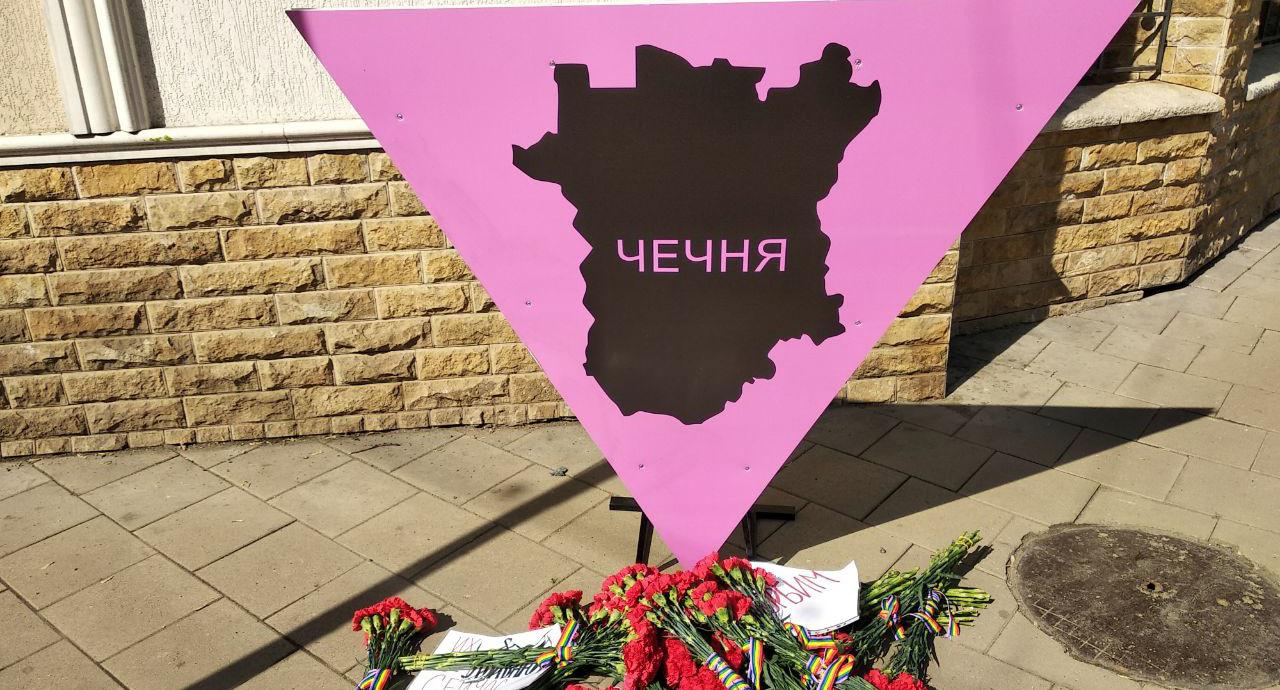 Как информировал "Кавказский узел", сегодня московские активисты установили памятный знак у постоянного представительства Чечни в Москве, отметив таким образом условную годовщину преследования геев в республике. Знак представлял собой сиреневый треугольник с силуэтом карты республики и надписями: "Помним", "Скорбим" и "Вечная память". Дополнение "Кавказского узла" от 8.20 11.04.2018: памятный знак был установлен 8 апреля.