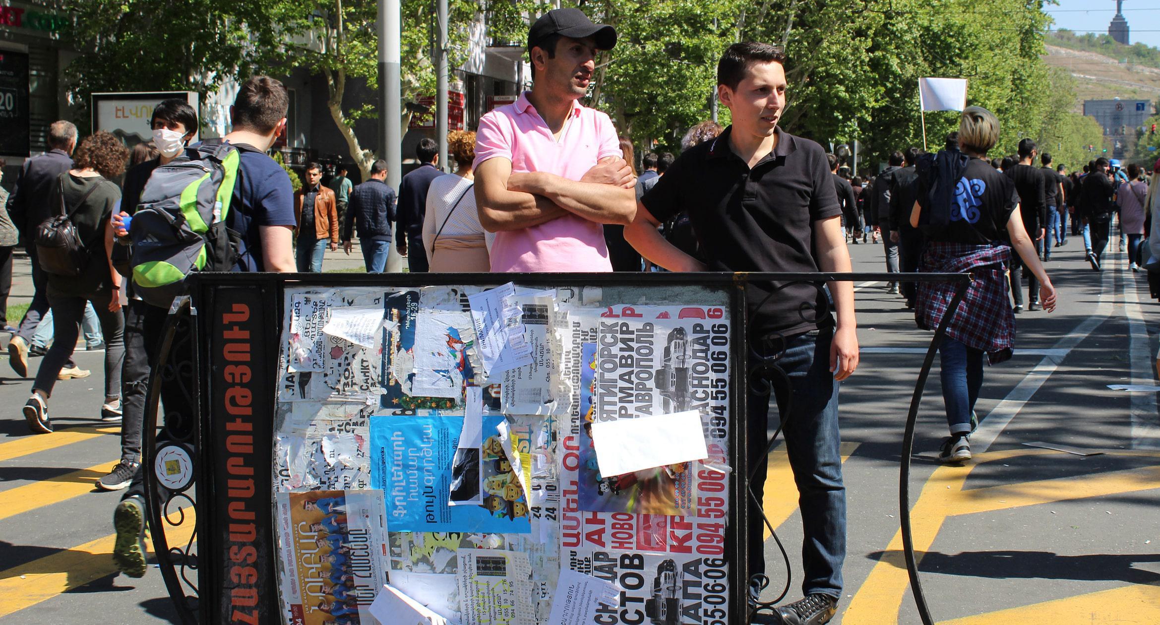 Как писал "Кавказский узел", сегодня участники акций протеста против избрания Сержа Саргсяна премьер-министром Армении провели митинг на площади Франции, а затем отправились к резиденции главы правительства. Полиция начала массовые задержания протестующих. По данным ведомства, к 14:00 по местному времени (13:00 мск) в отделения полиции были доставлены 72 человека.