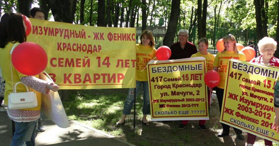 «Издевательство. Ведь многие не смогли поехать, потому что далеко. Мы все едва сводим концы с концами, лишних денег даже на проезд нет. Помитинговали мы сами с собой и разошлись», - пожаловалась женщина. По её словам, дольщики «Южного» постоянно проводят пикеты в Краснодаре и Москве.