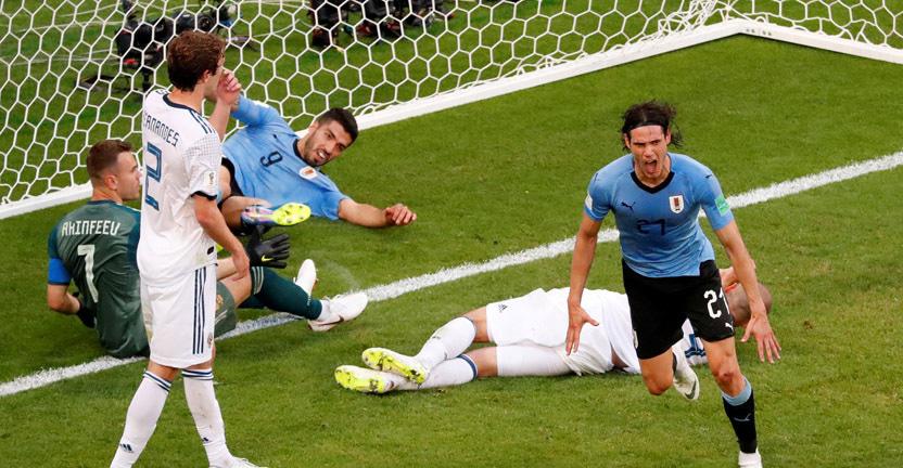 Счет в матче открыл на 10-й минуте нападающий Луис Суарес, а на 23-й минуте российский хавбек Денис Черышев срезал мяч в свои ворота. Третий мяч на 90-й минуте игры забил в ворота хозяев мундиаля форвард Эдинсон Кавани.