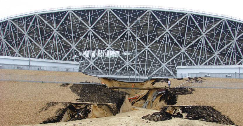 Как писал "Кавказский узел", 16 июля власти Волгограда объявили режим ЧС после того, как 15 июля в городе выпала двухмесячная норма осадков. Потоки воды смыли грунт с откосов и склонов, из-за чего образовались наносы на дорогах, в том числе рядом с "Волгоград-ареной". Дождь также смыл насыпной склон у стадиона. Эксперты заявили, что размыв откоса у стадиона "Волгоград-арена" стал следствием ошибок, допущенных при проектировании стадиона, и что "режим ЧС только на руку подрядчикам, так как позволяет избежать штрафных санкций".