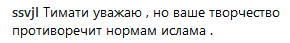 "Тимати уважаю, но ваше творчество противоречит нормам ислама", - отметил ssvjl.