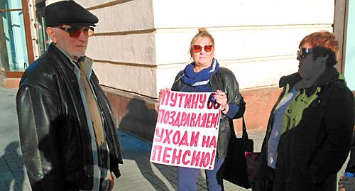 "Я думаю, что Путину пора на заслуженный отдых. Некоторые прохожие поддерживают нас, а одна накинулась на меня и сказала, что "морду надо набить". Я спросила полицейского, поддерживает ли он нашу позицию, он сказал, что его позиция нейтральна", - рассказала корреспонденту "Кавказского узла" Елена Шеина.