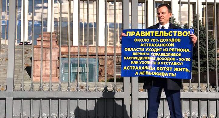 Пикетчик потребовал уменьшить отчисления Астраханской области федеральному центру