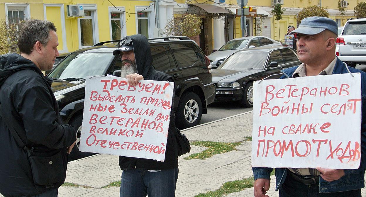 Выделенная астраханским ветеранам земля находится в санитарно-защитной зоне завода, эти участки нужно заменить на другие, заявили участники пикета в центре города.