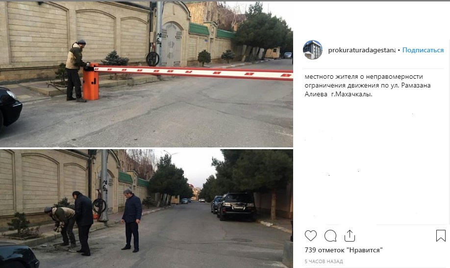 Демонтаж шлагбаума при въезде на улицу Р. Алиева в Махачкале активно обсуждается пользователями социальных сетей. Соответствующее сообщение, размещенное вечером 21 января на странице прокуратуры Дагестана в Instagram (31 357 подписчиков) по состоянию на 07.50 мск набрало 878 лайков.