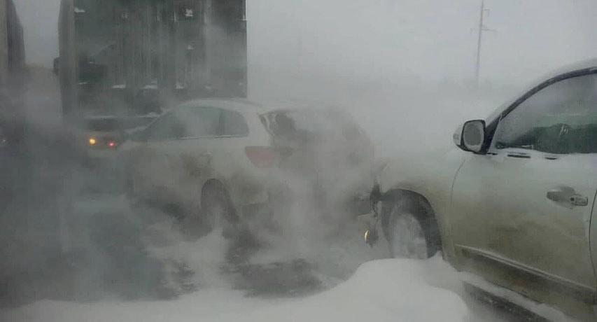 По данным МВД, в районе трассы наблюдается низовая метель и сильное обледенение, движение прекращено, начиная с 669 км у поселка Ерзовка.