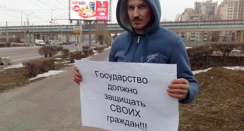 Пикеты продолжались два часа, с 13:00 до 15:00 (12:00 - 14:00 мск). Все протестующие стояли на площадке между Волгоградским областным судом и проспектом Ленина. Они держали в руках плакаты "Государство должно защищать своих граждан", "Судьба ребенка зависит от вас" и "Не разлучайте (брата) с родной сестренкой <...>".