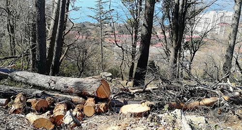 Член "Экологической вахты по Северному Кавказу" Владимир Кимаев посоветовал жителям "обязательно вызывать полицию, писать заявления и фиксировать на фото и видео спилы".