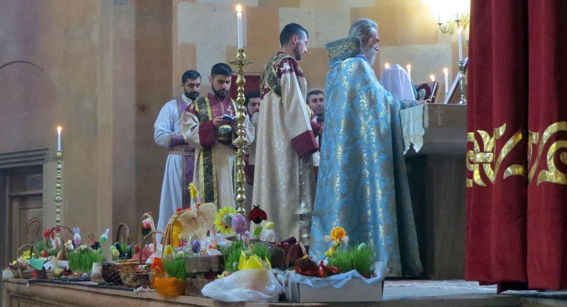 Прихожане не только приняли участие в службе, но и принесли пасхальные угощения для благословения архиепископа. После службы во дворе церкви по инициативе мэрии Степанакерта прошла выставка-продажа предметов прикладного искусства и концерт музыкальных коллективов.