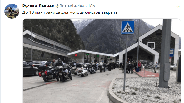 Байкеров разворачивают на грузино-российской границе еще с 27 апреля, сообщил 28 апреля аналитик Conflict Intelligence Team (CIT) Руслан Левиев. "До 10 мая граница для мотоциклистов закрыта", - написал он на своей странице в Twitter.