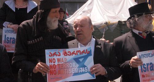 На акцию перед зданием парламента в Тбилиси вышли около 50 человек. "Мы проводим акцию в поддержку Израиля. Пусть там будет мир, пусть процветает страна. Мы солидарны с Израилем", - заявил корреспонденту "Кавказского узла" ректор академии Оскара Шиндлера Макс Мейр Шавит.