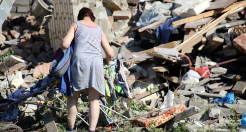 Вдова мужчины, погибшего при взрыве, плакала на скамейке возле подъезда, пока ее мама собирала в развалинах уцелевшие вещи. По словам пожилой женщины, вечером 11 мая она убедила дочь приехать к ней с внуком. "У меня как сердце чувствовало, я еще вчера сказала дочке, чтобы она забирала ребенка и ехала ко мне. Муж ее был пьян, хорошо, что она послушалась, это их и спасло", - сказала она корреспонденту "Кавказского узла".