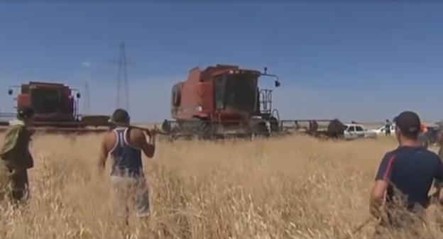 Сюжет об акции протеста фермеров в Волгоградской области показал 27 июня телеканал НТВ. Согласно сюжету, фермеры преградили путь комбайнам, которые начали убирать посеянное ими зерно с поля. Стоимость урожая они оценили в 100 млн рублей. Участники конфликта - пайщики АО "Равнинное" в Котельниковском районе Волгоградской области. Они вышли на поле с вилами и лопатами еще 22 июня - именно тогда неизвестные люди начали собирать урожай, рассказал корреспонденту "Кавказского узла" директор "Равнинного" Виталий Дмитренко.